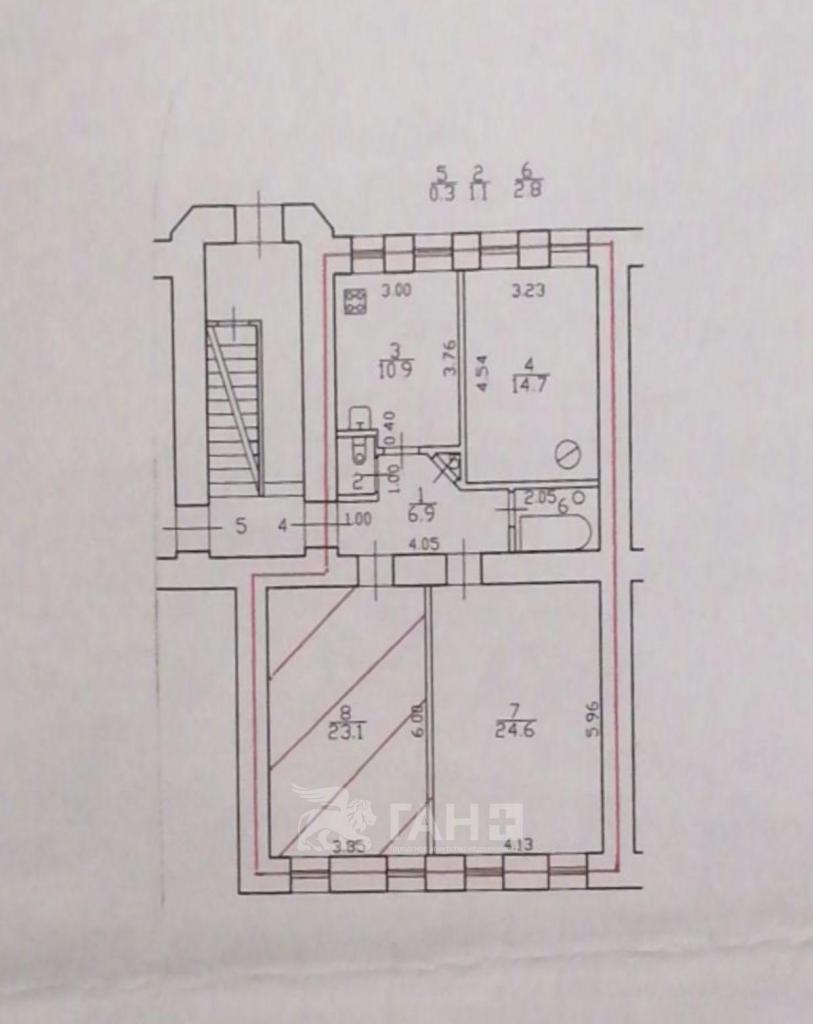Общая площадь 84,4 кв. м., кухня 10,9 кв. м., В квартире всего 3 комнаты (24,6; 23,1; 14,7) кв. м. Продается комната 24,6 кв. м. Потолки 3,35 м.