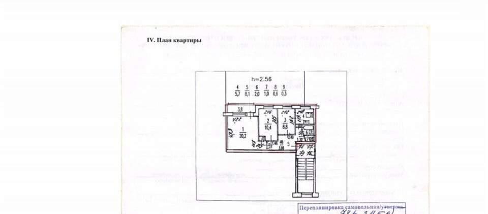 Продаётся трёхкомнатная квартира площадью 57 кв. м.